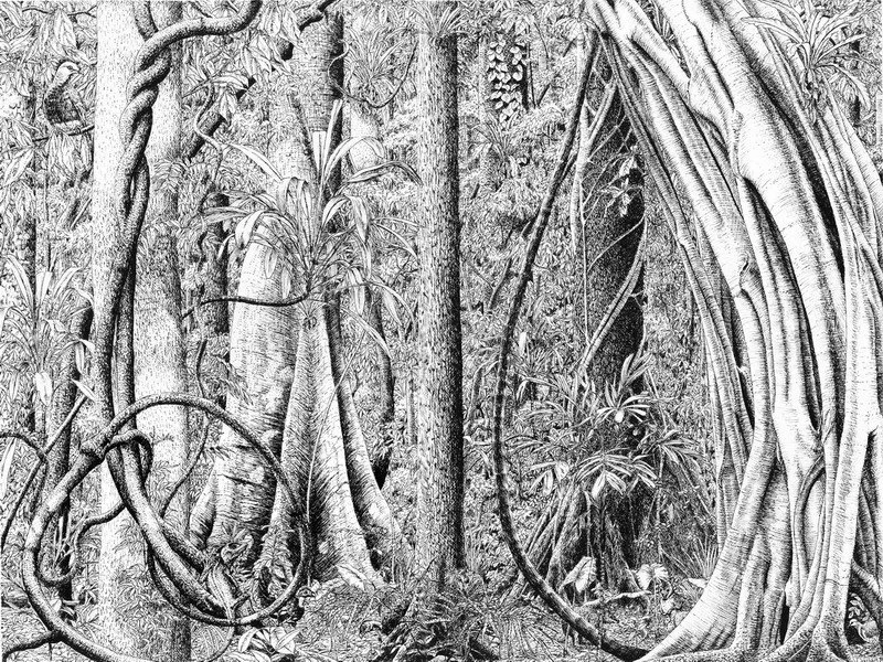 One of Dailan’s early drawings, expressing his marvel at the majesty and vibrance of the rainforests.